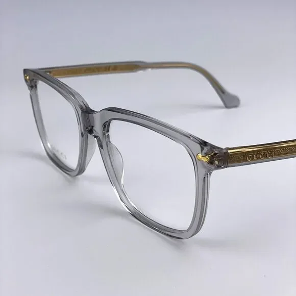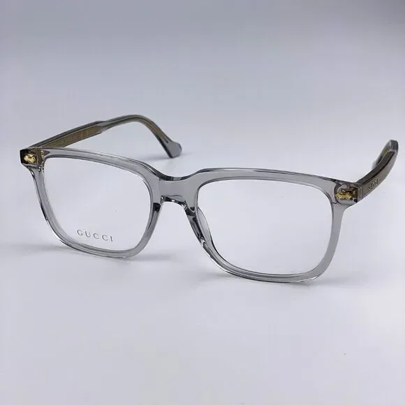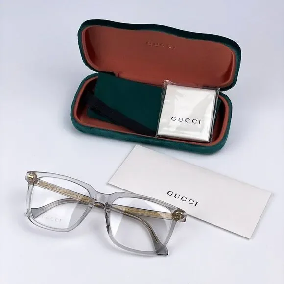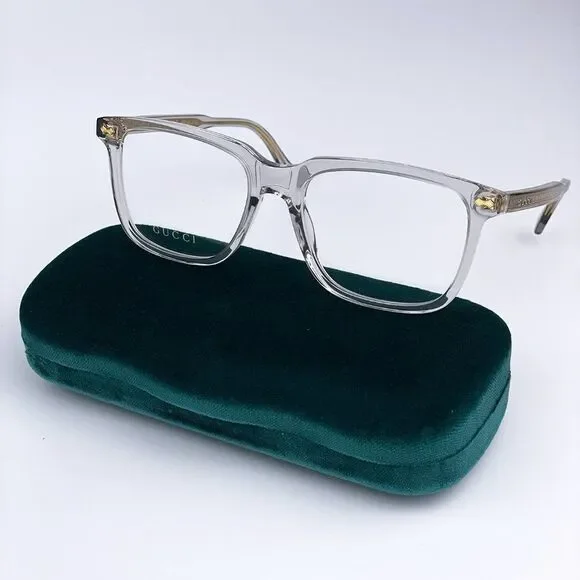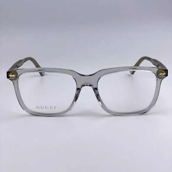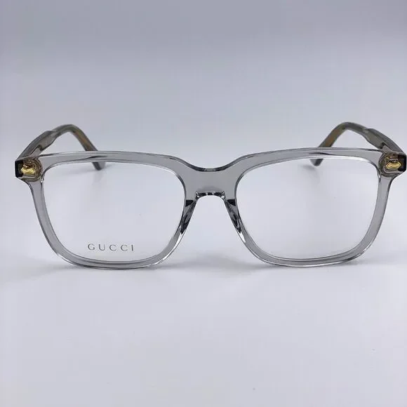 NEW GUCCI LOGO GG0737O 016 Clear Gray Rectangle Men EyeglassesBrand:GUCCIModel:GG0737O LOGOColor Code:016Gender:MenFrame Color:Clear GrayLens Color:DemoFrame Shape:RectangleFrame Style:Full-RimFrame Material: AcetateSize:L56X18X150Made in Italy.FULL RETAIL PACKAGE with all accessories: case, cloth, matching satin pouch and all paperwork.100% AUTHENTIC! "